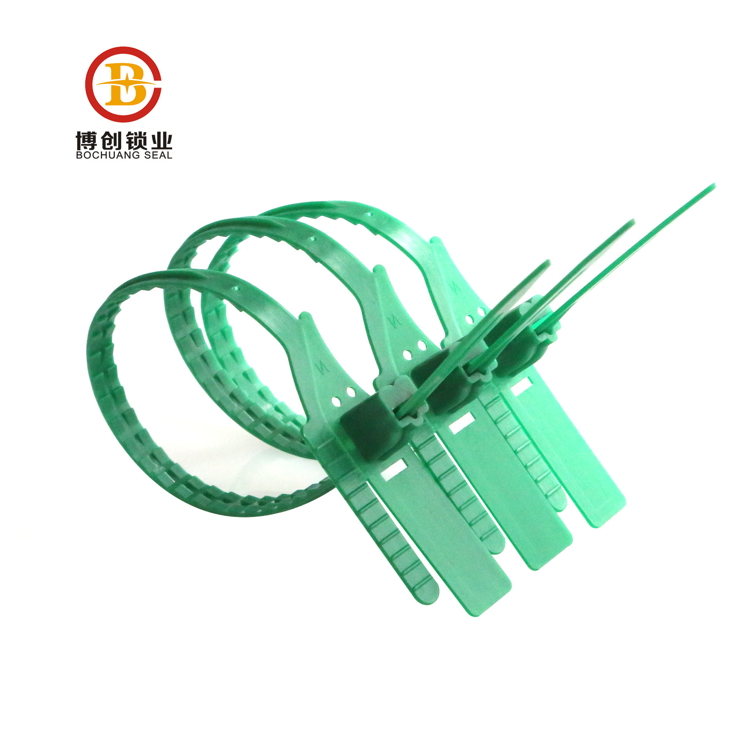 2. Pull tight plastic seals with serial number can be laser-marked or hot-stamped with